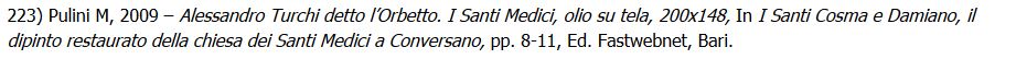 Venetiano”. Non è da escludere inoltre una sua puntata a Mantova, prima del ritorno in patria. “Divisò poscia di veder Roma, quindi colà recossi con Marcantonio Bassetti altro suo condiscepolo e collo stesso Ottino ed ivi giunto diedesi con tutta l’applicazione allo studio delle opere di Raffaello, del Correggio e del Caracci formandosi uno stile tutto suo” [238]. Nell’Urbe l'Orbetto partecipa alla decorazione della Sala Regia del Quirinale assieme a Saraceni e Bassetti e, tramite Ascanio Filomarino, riceve alcune commissioni dall’influente cardinale Scipione Borghese, tra cui, tramite Giangirolamo II, la tela dei santi Cosma e Damiano esposta nella chiesa di san Cosmo a Conversano [223]. Entra, altresì, a far parte dell’elite aristocratica romana sposando una donna di nobile casato, la quale conduceva un tono di vita sfarzoso e dispendioso “con carozza e livree” [239]. Mancini inoltre informa che il pittore era “di buon costume, studioso e ritirato”, mentre Passeri aggiunge: “fu il Turco uomo amabile, e rispettoso, di non discara presenza, di pelo castagno, ma alquanto singolare nella guardatura, perché partecipava del losco, benché graziosamente. Si trattava con assai moderata civiltà, e quello che più importa fu di costumi degni d’un uomo onorato, e cristiano”.