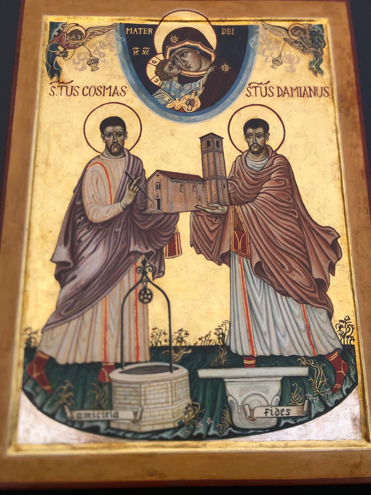 a parrocchia ha certamente origini antiche. Dai registri conservati nell'archivio parrocchia le la documentazione inizia dal 1660. Un riscontro di queste origini antiche è dato in particolare dalla chiesa parrocchiale di stile romantico. Studi recenti la fanno risalire a poco dopo il Mille. Nel tempo ha subito interventi di vario genere e ampliamenti, ad esempio il presbiterio è stato ampliato nel '700, ma erano state aggiunte pure nicchie che in seguito sono state tolte. Negli ultimi anni sono stati eseguiti numerosi lavori per riportarla al suo stile originale e per consolidarne la struttura. Ora si presenta raccolta, semplice e di richiamo per molti. Una nota particolare merita la pala dell'altare, un quadro del '700 di buona fattura che potrebbe racchiudere un po' di storia della parrocchia. Questa pala rappresenta infatti la Madonna del Carmine con due santi carmelitani e i due Santi Medici patroni della parrocchia, Cosma e Damiano. Questo accostamento e la tradizione che vuole la festa della Madonna del Carmine come sagra della frazione, ha fatto pensare che per un certo tempo ci sia stata la presenza di una piccola comunità di carmelitani, che avrebbero introdotto la devozione alla Madonna del Carmine, pur lasciando i Santi Cosma e Damiano patroni. Questa pieve romanica, in occasione della festa patronale, il 26/9/2006 è stata elevata a SANTUARIO grazie a sua Eccellenza Mons. Egidio Caporello (vescovo di allora) e da quel giorno, ogni anno viene dedicato ed organizzato un convegno dove partecipano numerosi professionisti e curatori della salute come medici e farmacisti che attira e raccoglie l'interesse da diverse località della provincia di Mantova.