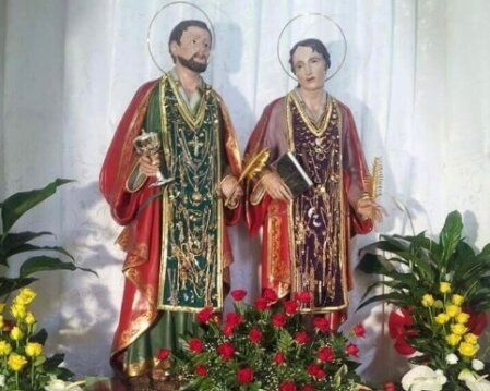 on è noto l’anno di costruzione, l’attuale struttura della chiesa denota il suo aspetto quattrocentesco. La facciata a capanna porta sulla sommità una croce di ferro. Lateralmente vi sono sei finestroni ogivali per lato. Il portale d’ingresso del secolo XV è sormontato da una lunetta ad arco ogivale contente un affresco del secolo XVIII raffigurante l’Assunta, al centro verso la sommità vi è un’apertura circolare. Uno splendido arco trionfale della metà del XV modanato e decorato da motivi floreali caratterizza l’interno; la chiesa è ad aula unica priva di decorazioni con copertura lignea. La stessa ha interessanti motivi decorativi tra i quali segnaliamo un dipinto della fine del secolo XVII della Santissima Trinità tra san Lorenzo e santa Lucia sul lato destro; un’altra tela del XVIII, raffigurante l’Ultima cena, è sul lato sinistro della zona presbiteriale. Il paese si avvia verso l’autunno, e si prepara ad un’altra grande festa popolare connotata dalle forti motivazioni religiose ed umane. Il 25 settembre nella chiesa della Madonna delle Grazie, proprio a ridosso della principale porta della città che immetteva sul decumano, si festeggiano i Santi Cosma e Damiano. Ai Santi Medici portati in processione si rivolgono, con un forte incalzare di orazioni e canti, tutti coloro che chiedono aiuto per la salute e il benessere di sé stessi e dei propri familiari. Insieme alla processione di Sant’Antonio, quella dei Santi Medici rappresenta uno dei momenti di più intensa spiritualità, un intenso rito collettivo che riporta il nostro paese, nella luce incerta dell’imbrunire, in un’atmosfera di altri tempi.