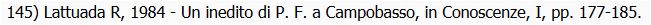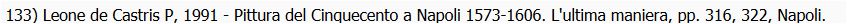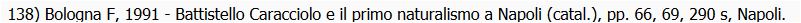 Più difficile si presenta il compito di stabilire l'autografia di un altro ciclo di affreschi, commissionato dall'Acquaviva: quello, cioè, che decora il soffitto della camera dei conti nel castello di Conversano. Si tratta di una serie di ovali con Storie di Giacobbe, per i quali non esiste altro termine cronologico oltre a quello, già fissato per le tele della Gerusalemme, del 1643 [143]; a meno che non li si debba ritenere opere di bottega eseguite dopo la morte del F., come suggerirebbe la vicinanza compositiva e stilistica con gli affreschi di S. Cosma [141, 136]. L'attività pittorica delnostro negli anni conversanesi si estende ad una serie di opere in cui si scorge in vana misura l'intervento di collaboratori.