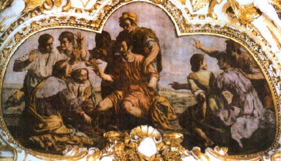 credevano mediocri interventi della bottega fossero in realtà ridipinture successive [143]. L'esecuzione delle dieci tele (o almeno la gran parte dell'esecuzione) ha un suo presumibile terminus ante quem nell'anno 1643, in cui il conte di Conversano, accusato di lesa maestà, fu imprigionato a Napoli e poi a Madrid. Riabilitato, egli tornò a Conversano nel 1646, dopo la morte del Finoglio [143]. Legato alla stessa committenza è la decorazione pittorica della chiesa dei santi Cosma e Damiano in Conversano, costruita dopo il 1636, in cui l'intervento del nostro appare di qualità inferiore rispetto al suo solito