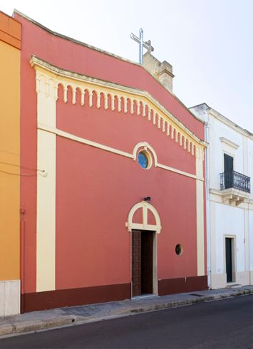 a chiesa fu consacrata nel 1886 dal vescovo di Gallipoli Enrico Carfagnini e tra il 1935 - 1936 fu ampliata con una nuova campata e la sacrestia. Nuovamente rimaneggiata tra il 1982 – 1983 ha la facciata di dimensioni piuttosto modeste; è dipinta di arancione e giallo, provvista di due lesene culminanti in una cornice triangolare sormontata da un frontone; al centro in basso vi è la porta d’ingresso sormontata da una cornice centinata, sulla destra una piccola finestra circolare, mentre al di sopra della porta è situata una finestra circolare ad oculo inquadrata in una cornice centinata, che si prolunga orizzontalmente fino alle lesene, tagliando in due la facciata. La chiesa, a navata unica, si sviluppa longitudinalmente attraverso tre campate; sul muro di fondo vi è l’antico altare a muro davanti al quale è stata posta la nuova mensa eucaristica; nella lunetta absidale vi è un dipinto raffigurante i due Santi Medici, opera di un pittore russo profugo dall’Unione Sovietica. In sintesi, la relazione tra Sannicola e i santi medici Cosma e Damiano è un ponte tra fede, storia e tradizione locale, che valorizza il ruolo dei santi come protettori e modelli di umanità e carità nel campo della medicina e oltre.
